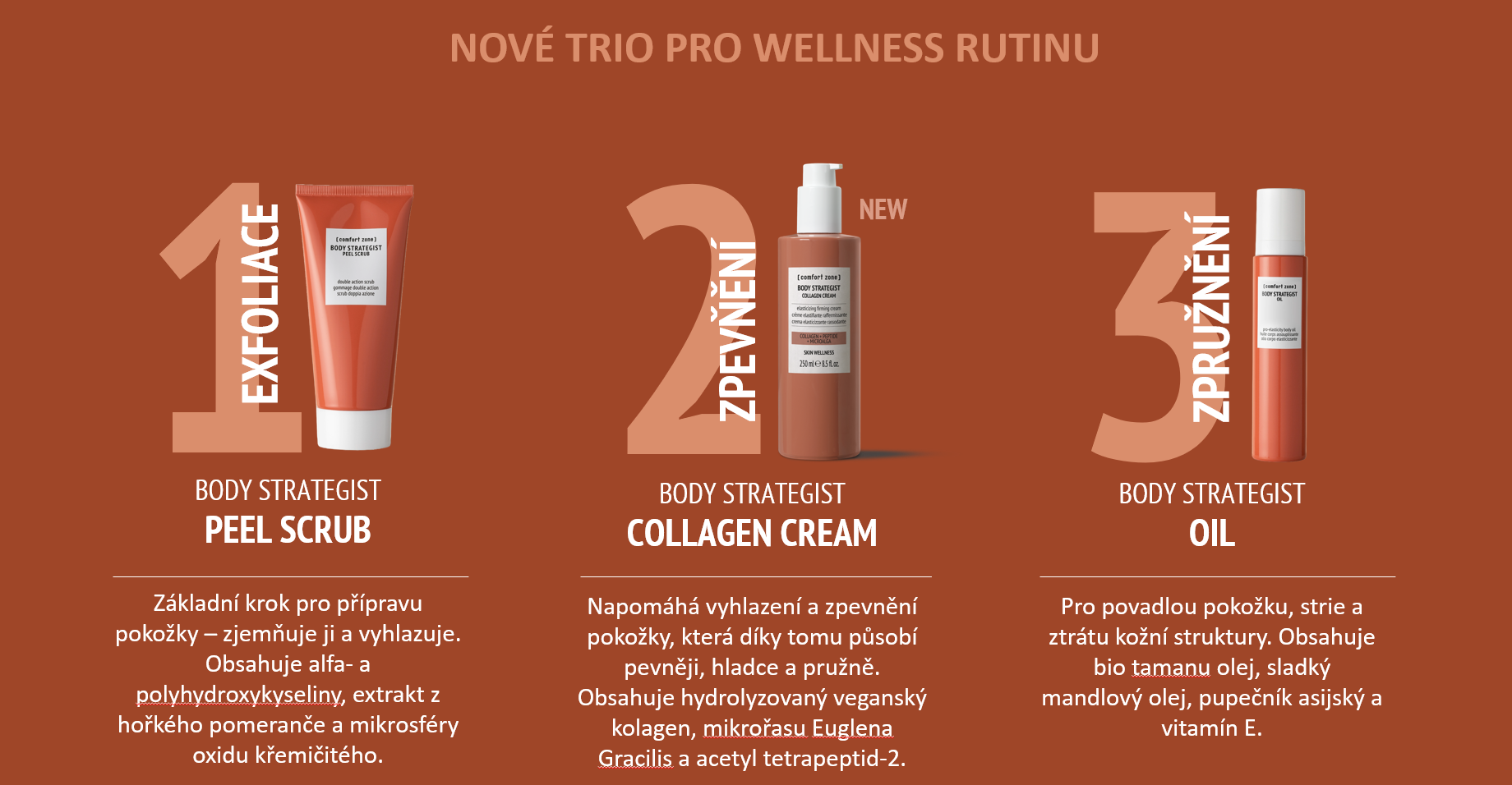 Body Strategist Collagen Cream zlepšuje pět klíčových parametrů kožního komfortu (Skin Wellness: hydrataci, funkci kožní bariéry, jas, elasticitu a pevnost), pro hladší, hebčí a viditelně zdravější pokožku.