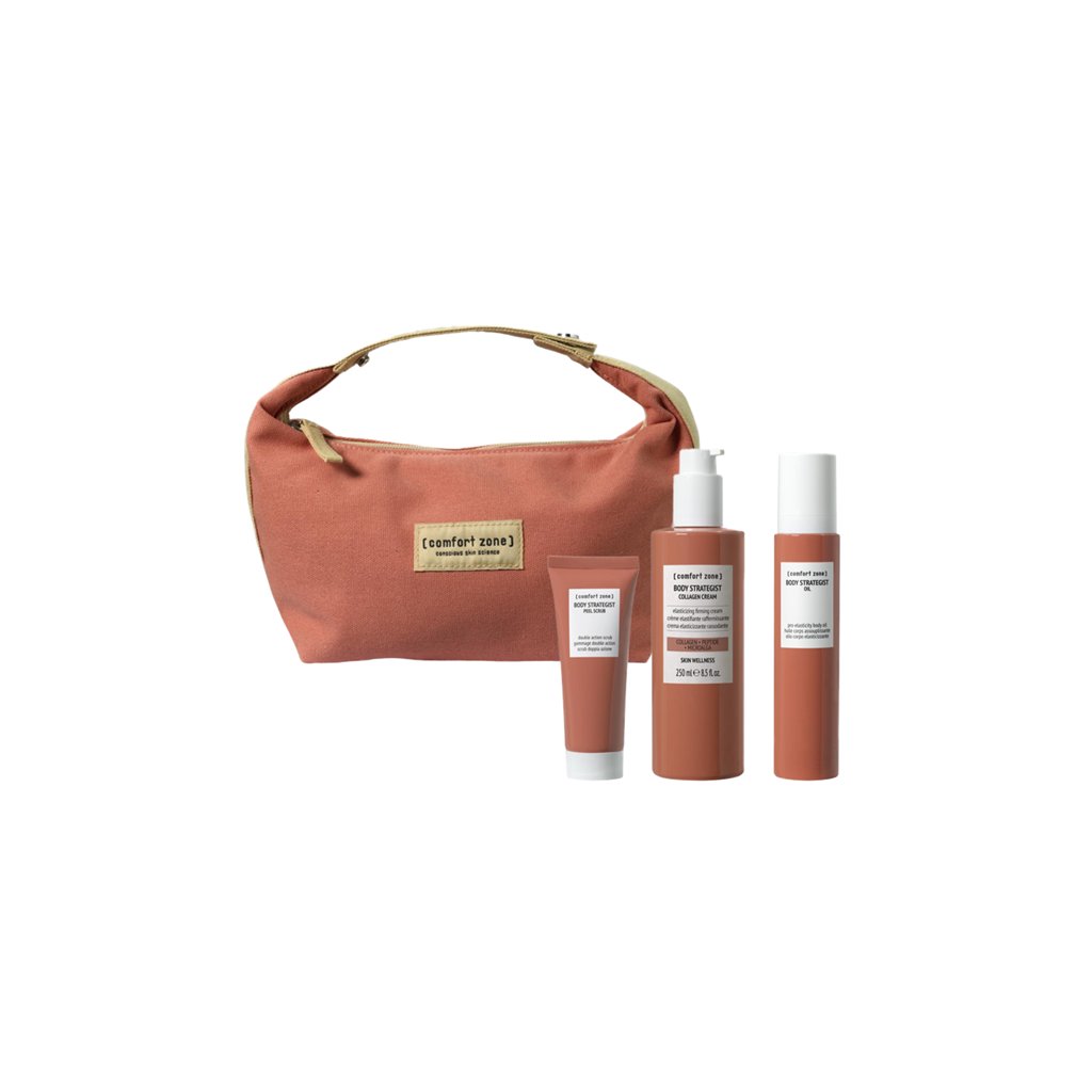 BODY STRATETGIST THE WELLNESS ROUTINE: peel scrub 75ml + collagen cream 250ml + oil 100ml + dárková kosmetická taštička