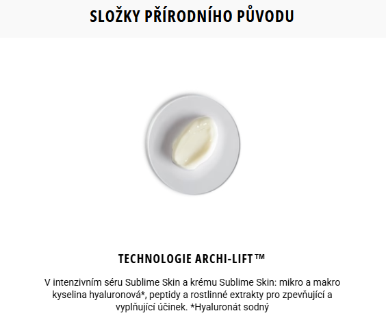 EXTRAKT Z ŘEBŘÍČKU MILLEFOLIUMObsažený v intenzivním séru Sublime Skin a krému Sublime Skin. |