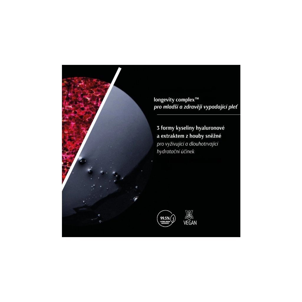 Koncentrované sérum s několika molekulárními formami kyseliny hyaluronové pracuje v různých vrstvách pokožky. Pomáhá uzamykat vodu, redukovat transepidermální ztrátu vody (TEWL) a okamžitě vyhlazuje jemné linky.