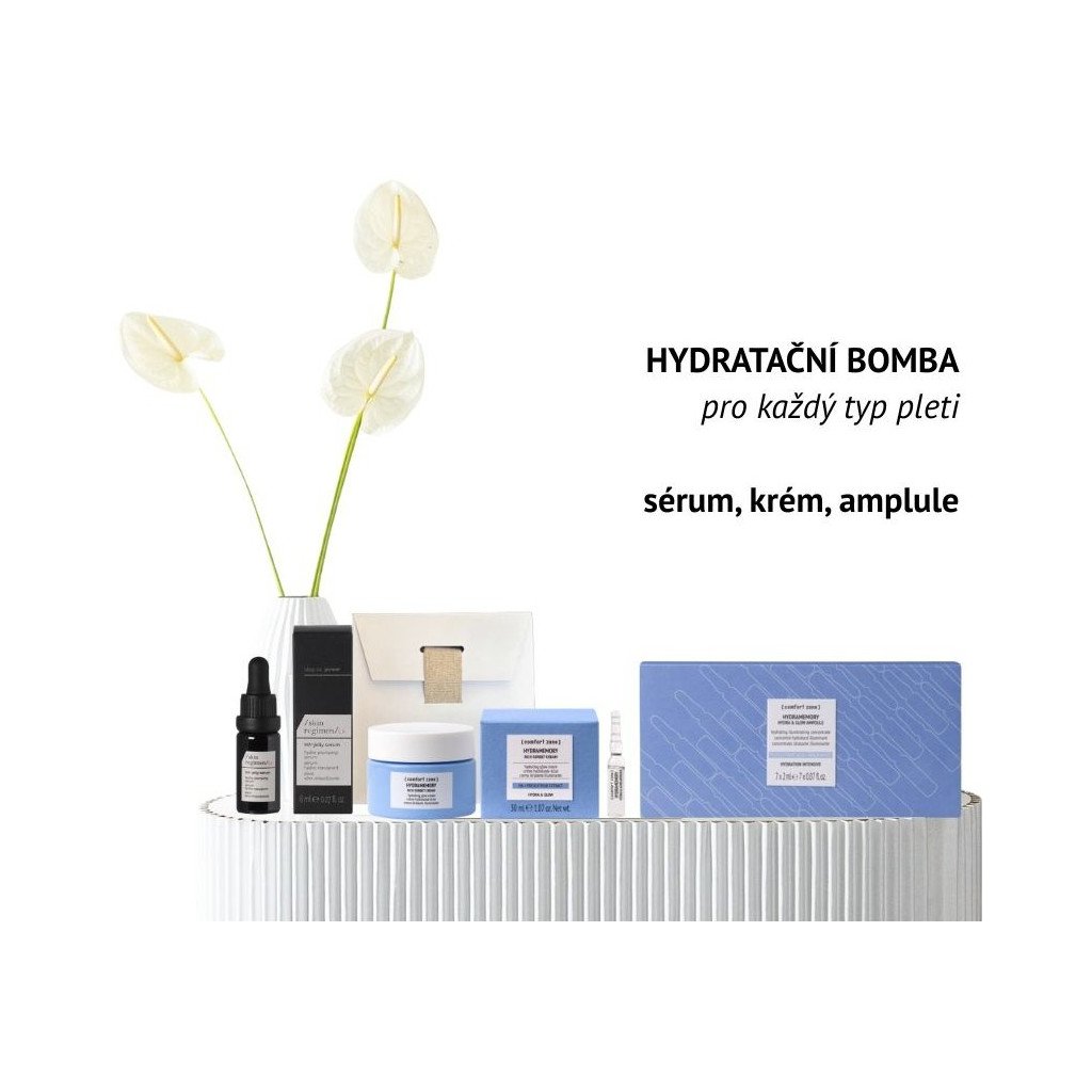 Hydratační bomba s kyselinou hyaluronovou: rich cream, HA sérum, hydratační amplule