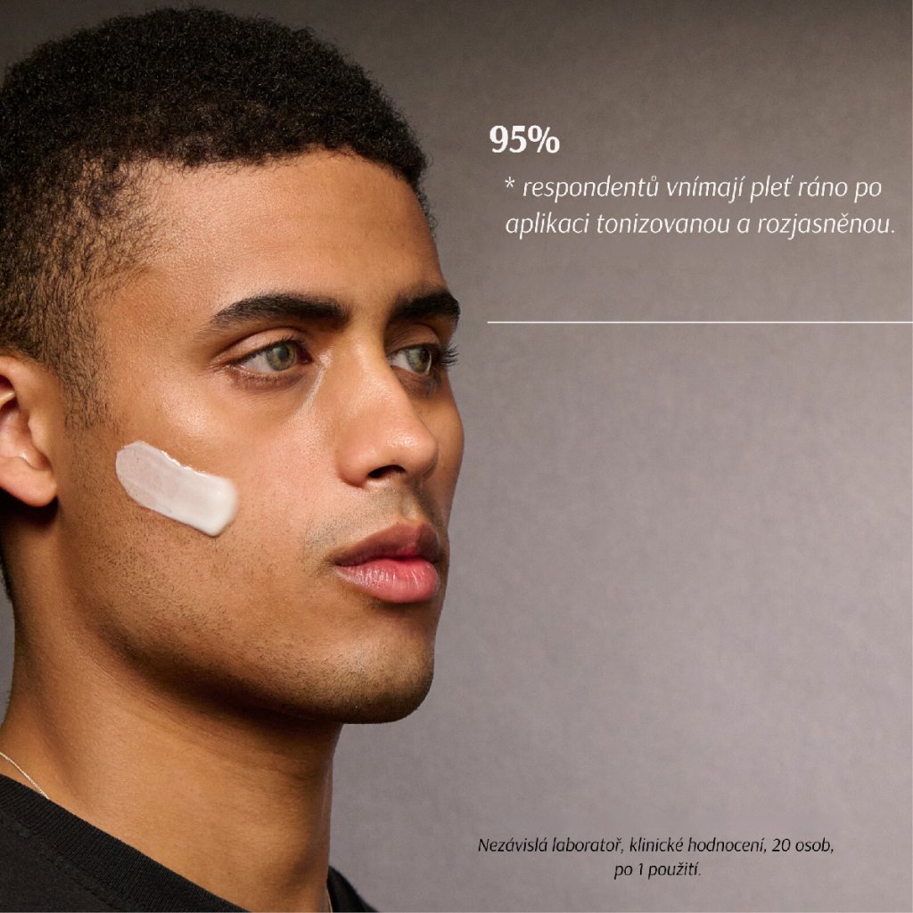 - Rozjasňující účinek klinicky prokázán u 95 % lidí ráno po aplikaci. **