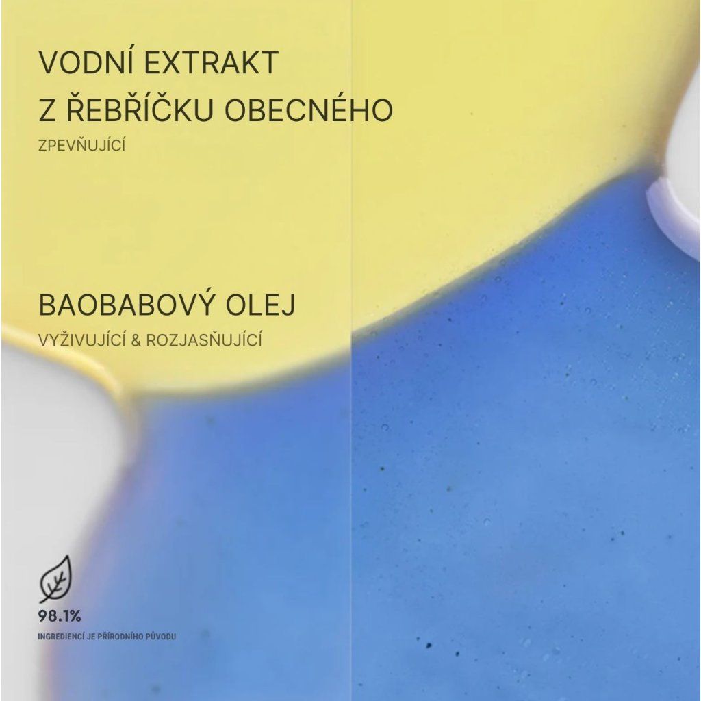 Díky baobabovému oleji posiluje kožní bariéru, podporuje strukturu pleti a zlepšuje její pružnost. Její biomimetická textura dokonale splyne s pletí, poskytuje intenzivní výživu bez pocitu zatížení a zanechává ji den po dni hladší a pevnější.