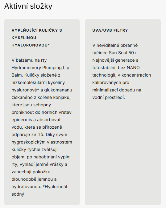 | HYDRAMEMORY balzám na rty: | tuba 10 ml |