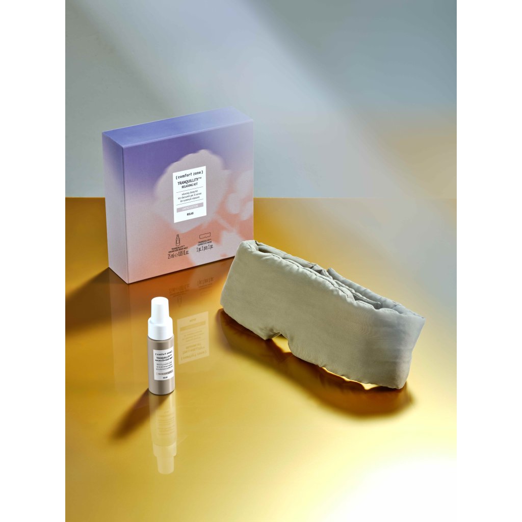 Následně si nasaďte hedvábně jemnou masku na oči, zhluboka dýchejte a dopřejte si chvíli nerušeného klidu.
